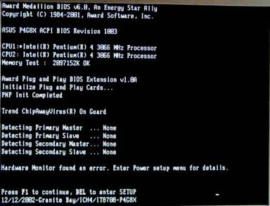 spinning at about 1,450 rpm and the BIOS monitor flags any speed below 1500 rpm as too low.